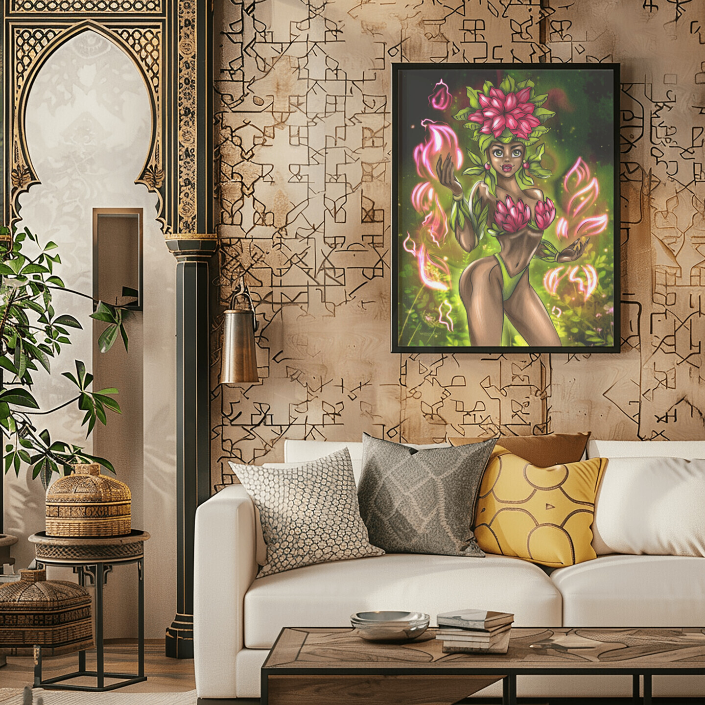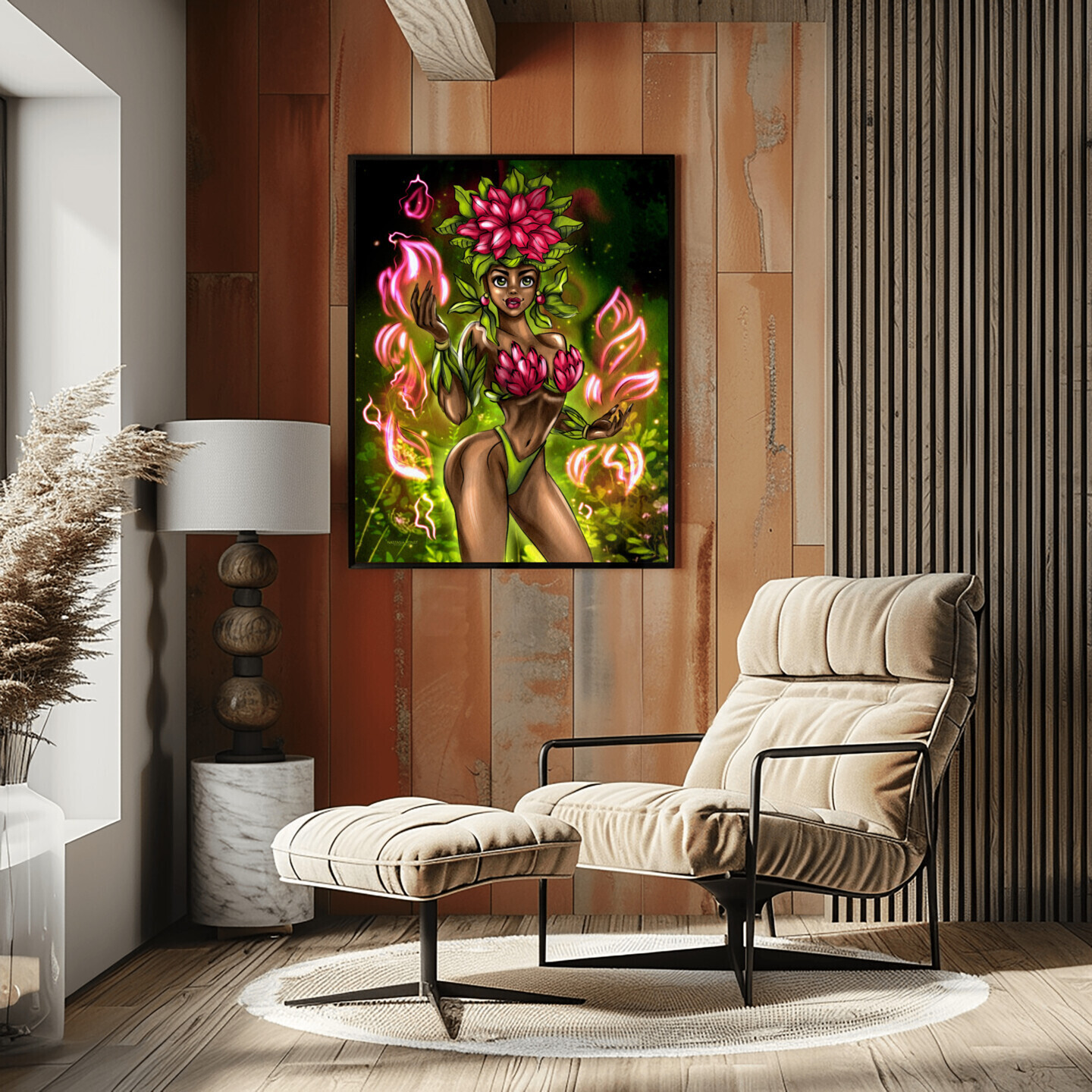 This isn't just decoration—it's a daily reminder of your own strength and capacity for transformation. The fire dancer doesn't just hold lotus petals; she offers you the courage to embrace your own rebirth.