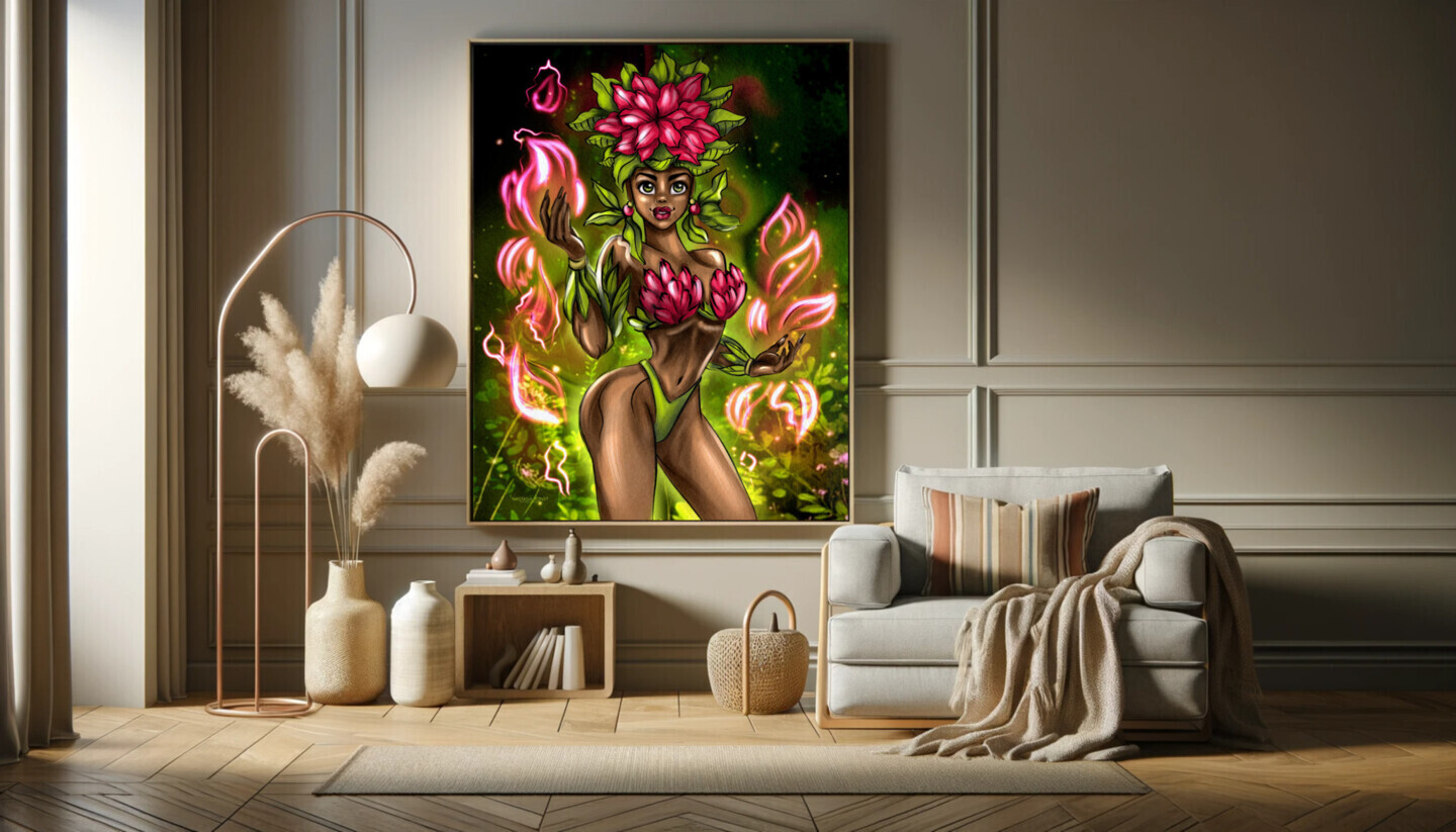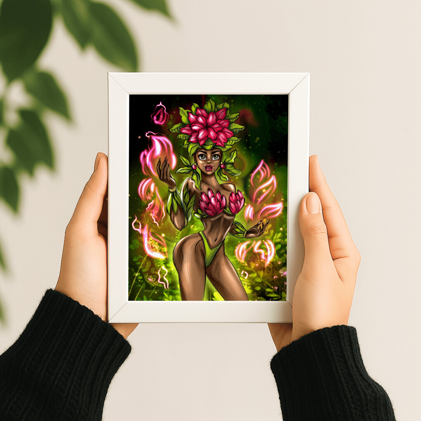#AfrofantasyArt #DigitalDownload #BirthdayGift #EmpoweringArt #FireDancerPrint #LotusSymbolism #FantasyArt