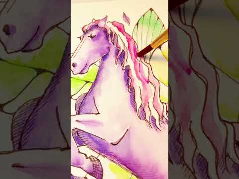 🌿A dream took form on paper — a vision of a violet horse rising in quiet triumph from a sanctuary of emerald leaves. With a mane kissed in fuchsia fire and hooves lifted in delicate defiance, she is no ordinary steed. She is spirit, story, and soul — an ethereal messenger from a forgotten forest of wonder.
