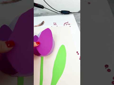 Each element of this collage was carefully arranged to embody the essence of cut-paper artistry, combined with a dreamy color palette. The soft yellow background enhances the deep purple tulip and its lively green stem, creating a warm and inviting piece that blends vintage aesthetics with modern flair.